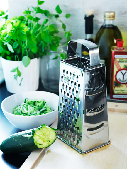 Терка IKEA IDEALISK — практичный кухонный инструмент из нержавеющей стали. Острая рабочая поверхность позволяет легко натирать овощи, сыр, шоколад и другие продукты. Удобная форма и нескользящие края обеспечивают устойчивость при использовании. Компактный размер подходит для хранения в ящике или на подставке. Можно мыть в посудомоечной машине.