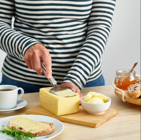 Совет для всех любителей сыра! Эта прочная лопатка из нержавеющей стали поможет вам каждый раз нарезать сыр идеально тонкими ломтиками. Проста в использовании, так же проста в мытье – просто положите ее в посудомоечную машину.